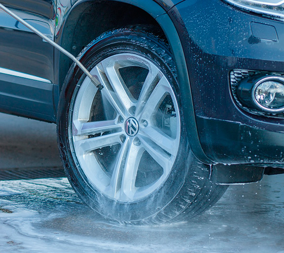 A água quente sem calcário e o sabão especial utilizados asseguram uma lavagem “sobre rodas”. Ao lavar a sua viatura, não se esqueça dos pára-choques e das jantes.